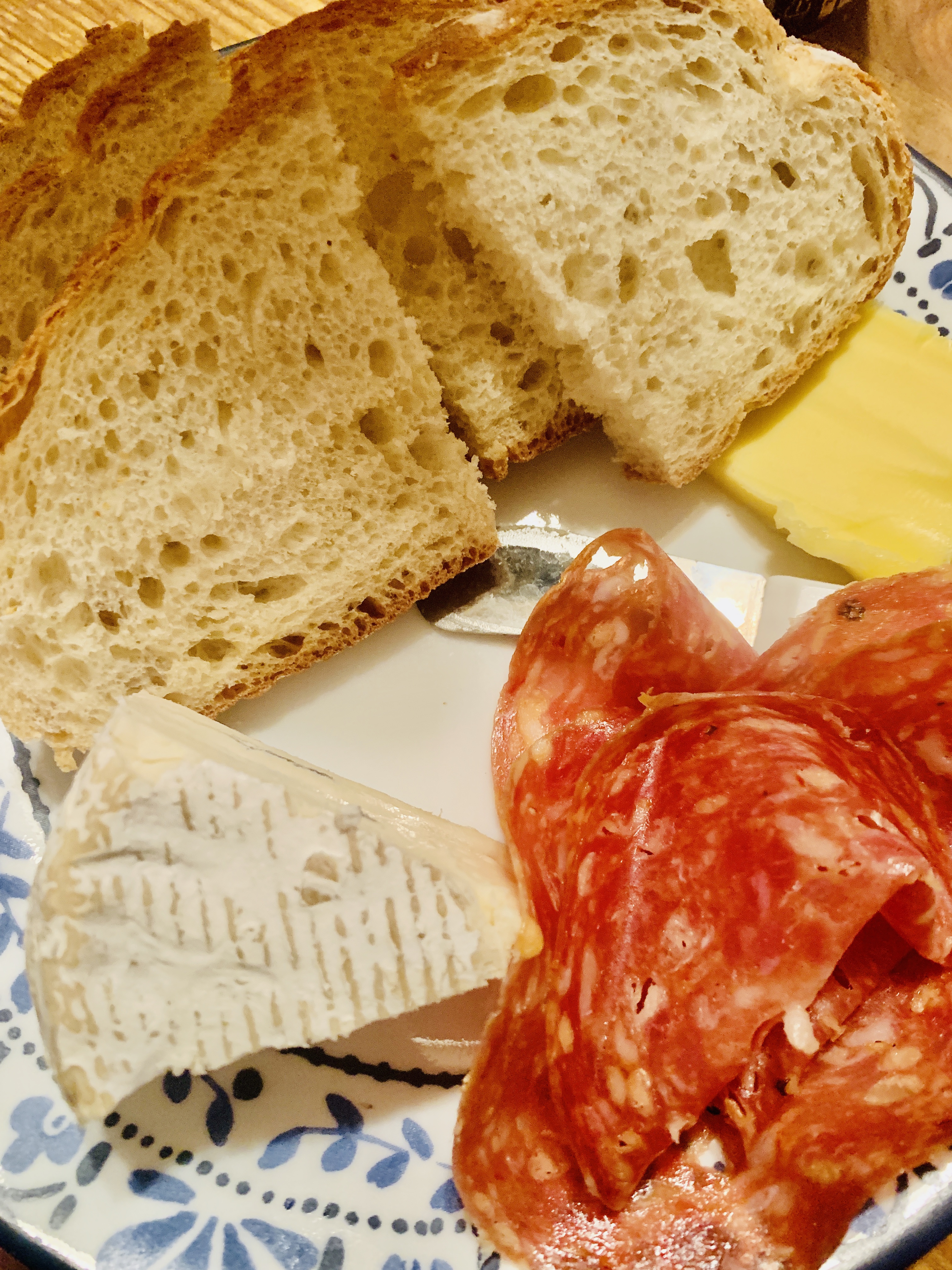 For dinner Matt made Maryland style fried chicken with my grandpop’s secret ingredient—a little bit of granulated chicken bouillon sprinkled into the flour—and cornbread and salad. We have so much chicken leftover! I didn’t eat too much of it since we had pork for lunch.