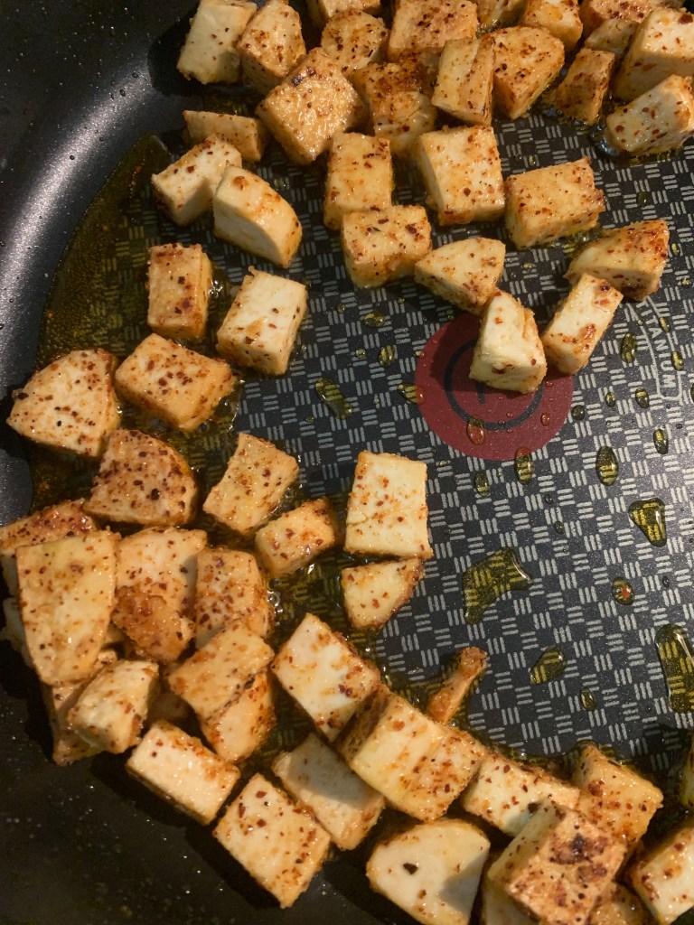 For lunch I pan-fried some extra firm tofu and tossed with some seasoned soba we bought at H Mart.