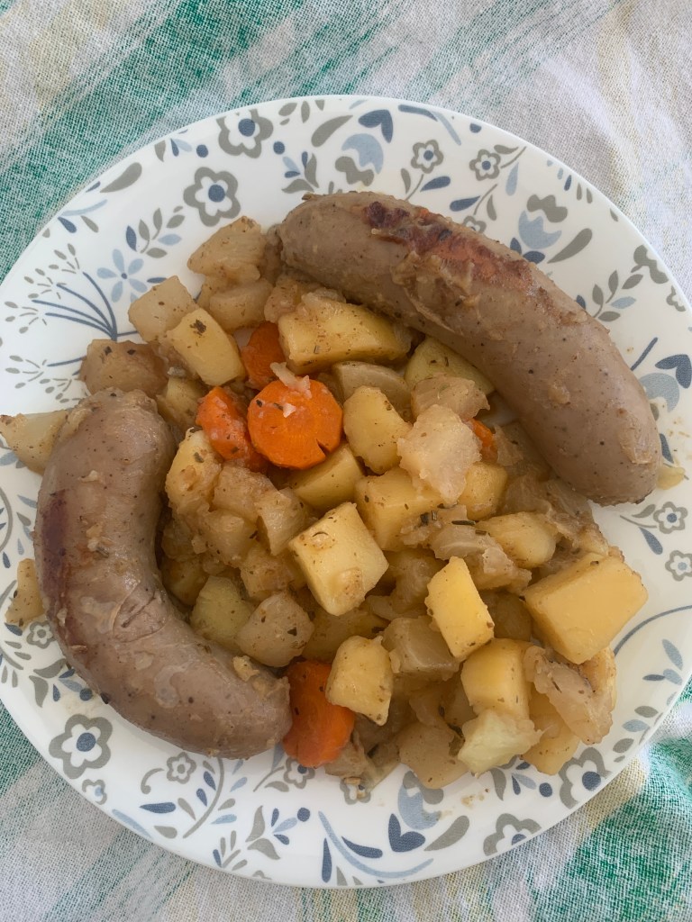 For lunch I made a sort of riff on Dublin Coddle in a skillet that turned out well.