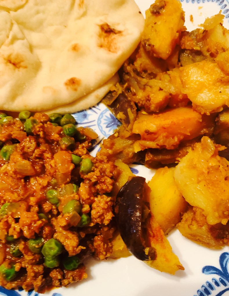 For dinner we had leftover keema and potato/eggplant from Sunday.