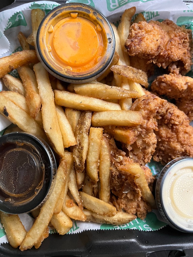 I tried two different places for dinner in downtown York and they were also unexpectedly closed (???) so I ended up getting tenders and fries at the first place I saw open. They were actually really tasty and fresh! I asked the teenager taking my order what sauces were good and he hooked me up. Very pleasantly surprised. Maybe it is the universe teaching me a lesson about trying to find fancier food? Ha! I had hoped for more veggies than coleslaw but it will do. Can’t beat dinner for $13!