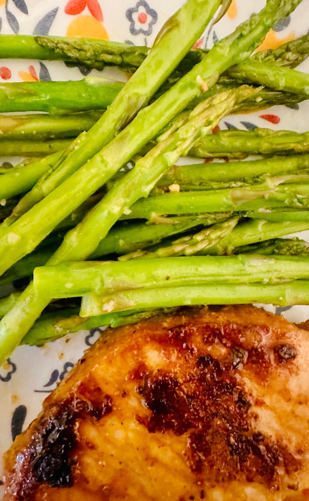 First I had lunch—leftover mushroom Swiss chicken burger and some Zapp’s Voodoo Pretzel Stix I got at Costco. Matt had a leftover pork chop and asparagus with rice. He also made extra rice for tomorrow and I defrosted some Maryland stuffed ham I had made and froze and some chicken thighs.