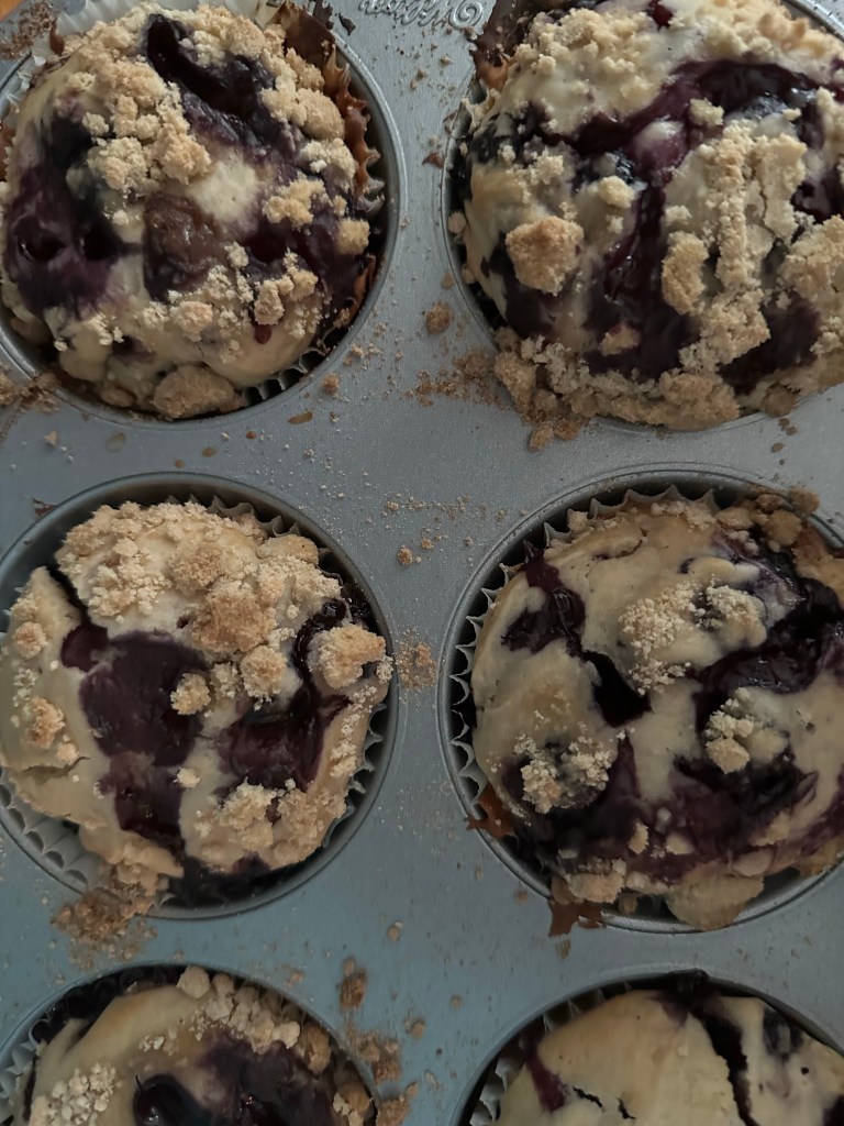 I made cucumber lox egg salad for our lunch. Then I made giant blueberry muffins for a snack and to take tomorrow in case I get hungry at my meet up. It was the first time using these pans and they came out really well!