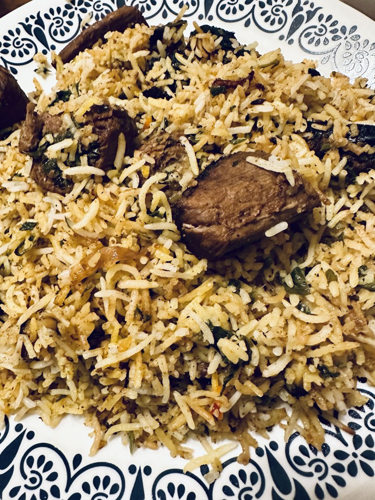 For dinner Matt made turkey tenderloin and jazzed up the leftover couscous with spinach and saffron.