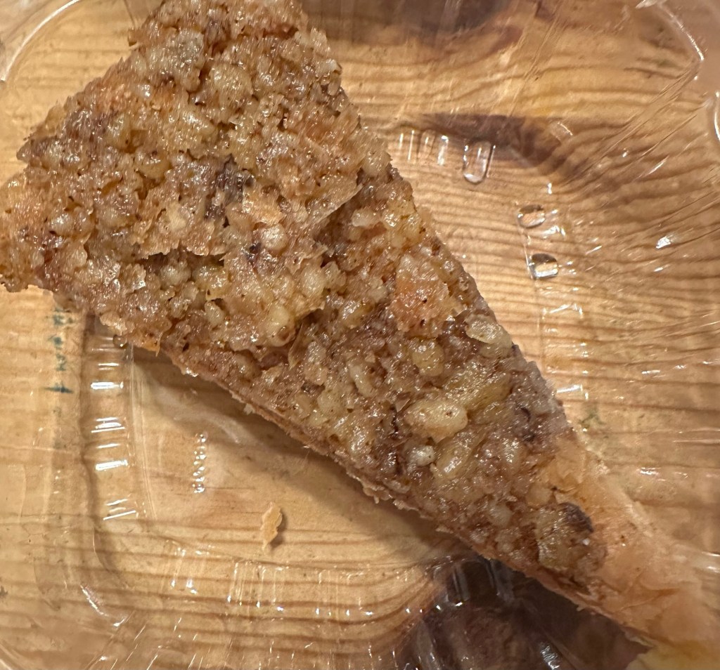 For dinner there was purposely “leftover” Chinese food and baklava cheese cake from Naz’s. It was tasty cheesecake with layer of phyllo and walnut on top. I don’t love walnuts but it was really offset by the cheesecake part.