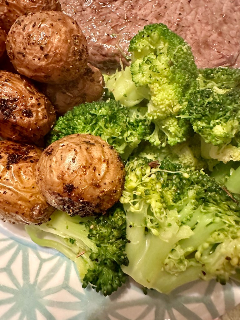 For dinner we had knockwurst with the sides we randomly/accidentally got with our crab cake order earlier in the week. Easy-peasy!
