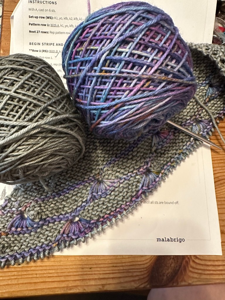 Did more on the shawl and it is more subtle than I expected from the skeins but it’s cute: