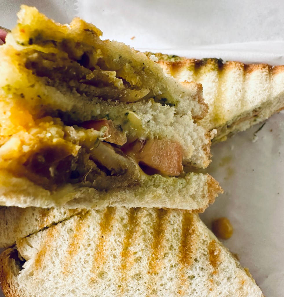 After class I went to this fast casual egg Indian place that was open until 10 pm and got a spicy egg curry (eaten with chapati) and a “Bombay Grill sandwich” which was a triple decker with samosa filling one side and toppings/sauce on the other. Both were really good. I was so hungry—just the sandwich would have been enough for a regular day.