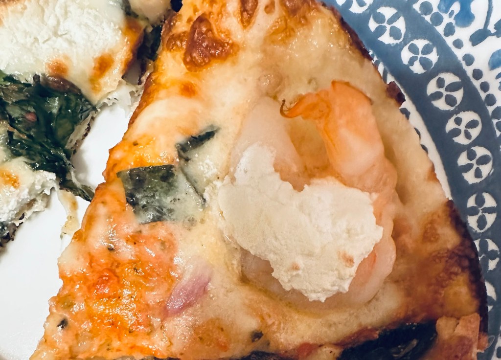 For lunch we had spinach quiche and then for dinner we had a shrimp pasta and a tomato salad from the meal prep place, supplemented with extra empress tomatoes I had bought at Lidl.