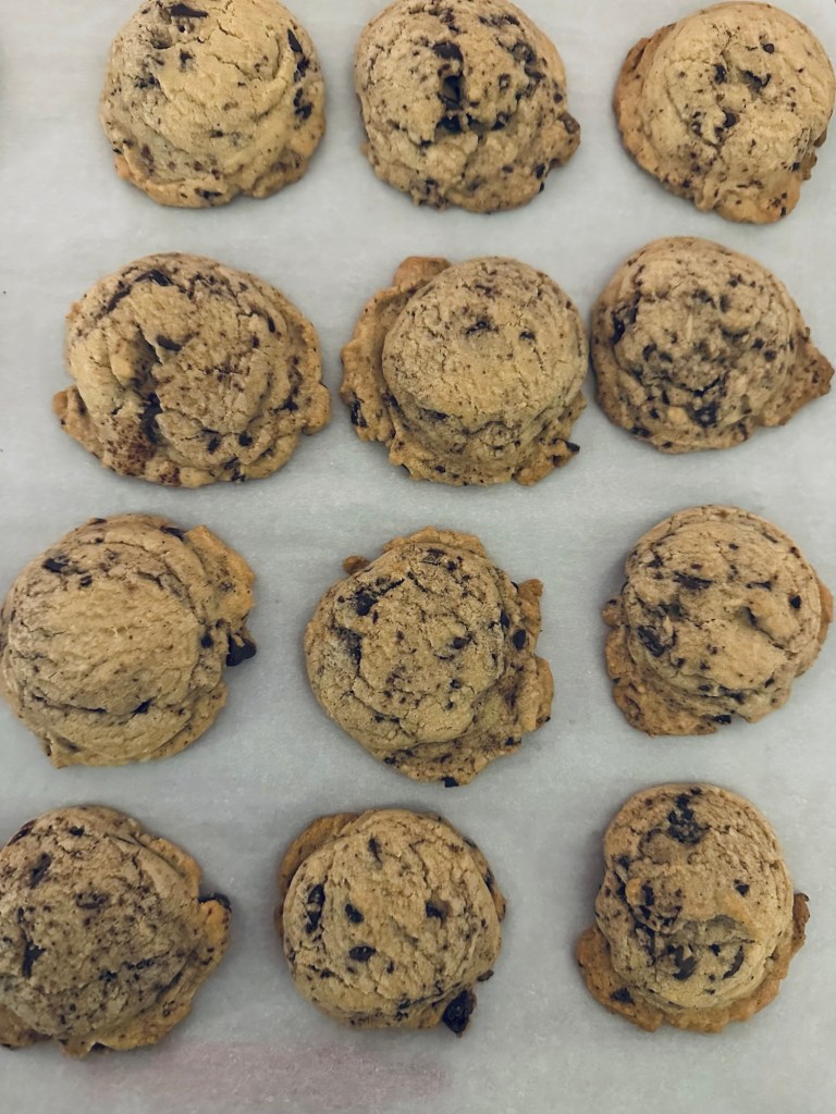 Then we baked cookies—brown butter chocolate chip. They came out good! We cooled the butter wrapped up in the yard on our table in the snow.