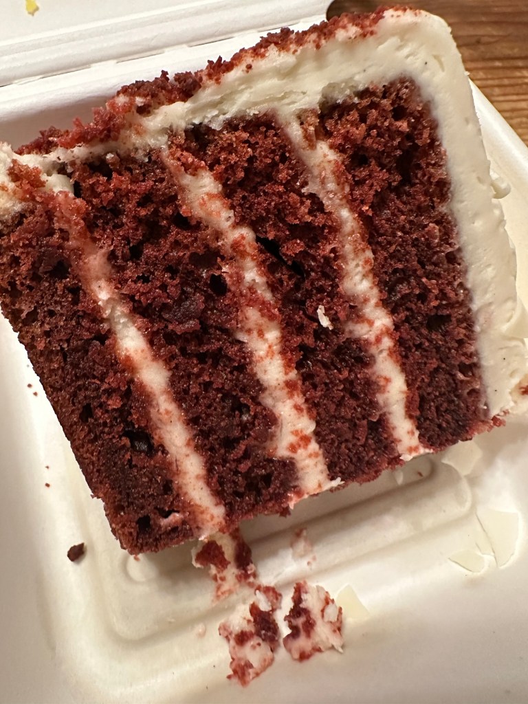 After dinner we tried some cake slices and it was the worse cake we’ve ever had. Both flavors—one was “golden milk” like the spiced turmeric trend and the other was red velvet but they were both super dry with weird thick, greasy icing and the red velvet was burnt! I think pastry is what they are good at. Maybe they feel like they should make cake but don’t know how?