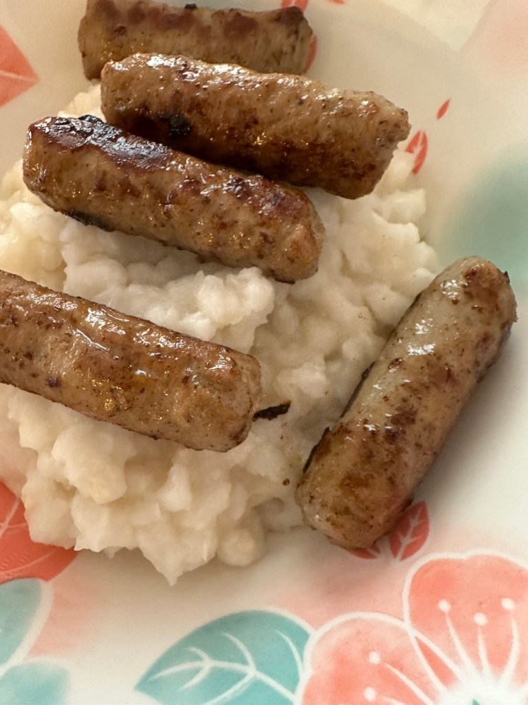 For lunch we had the leftover parm and then for dinner we had cod (a new way with some Ritz crumbs), mushroom pilaf and cole slaw.