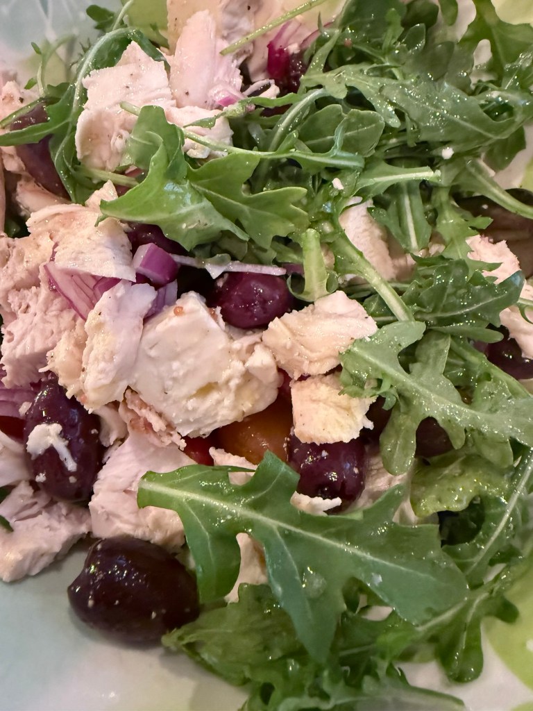 For dinner I made baked potatoes and we had with leftover beef, leftover chicken and salad.